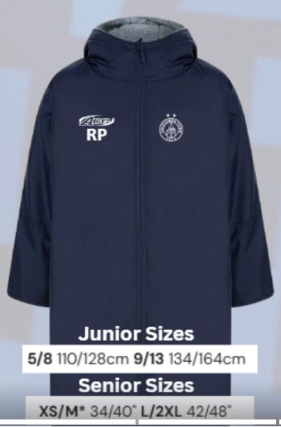 • Stanno branded fleece lined all season jacket, printed club logo and your choice of initial or number.